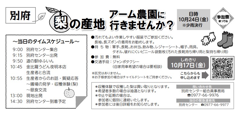 お問い合わせ先:別府センター組合員事務局 ☎0977-66-9976