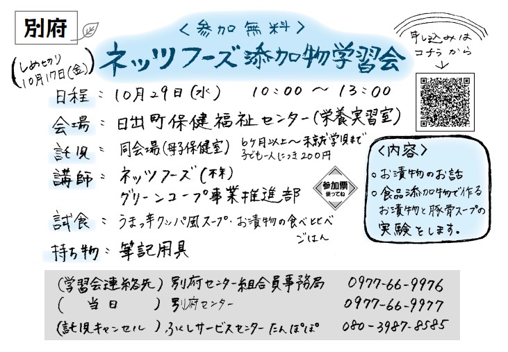 お問い合わせ先:別府センター組合員事務局 ☎0977-66-9976