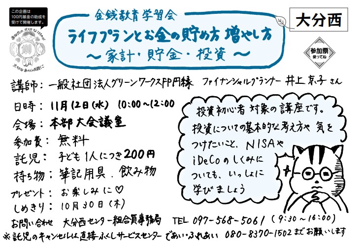 お問合せ先:大分西センター運営委員会 ☎097-568-5061