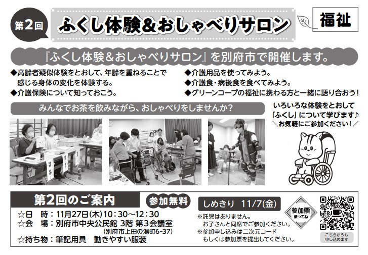 日にち:11月27日(木)会 場:別府中央公民館 3階 第3会議室