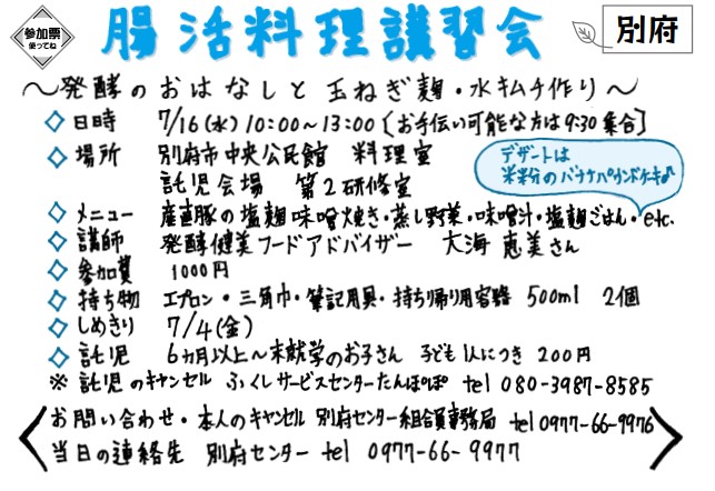 日時:7月16日(水)10:00~13:00 場所:別府市中央公民館 料理室 参加費:1000円 お問い合わせ・本人のキャンセル:別府センター組合員事務局TEL:0977-66-9976当日の連絡先:別府センターTEL:0977-66-9977 この記事を共有する